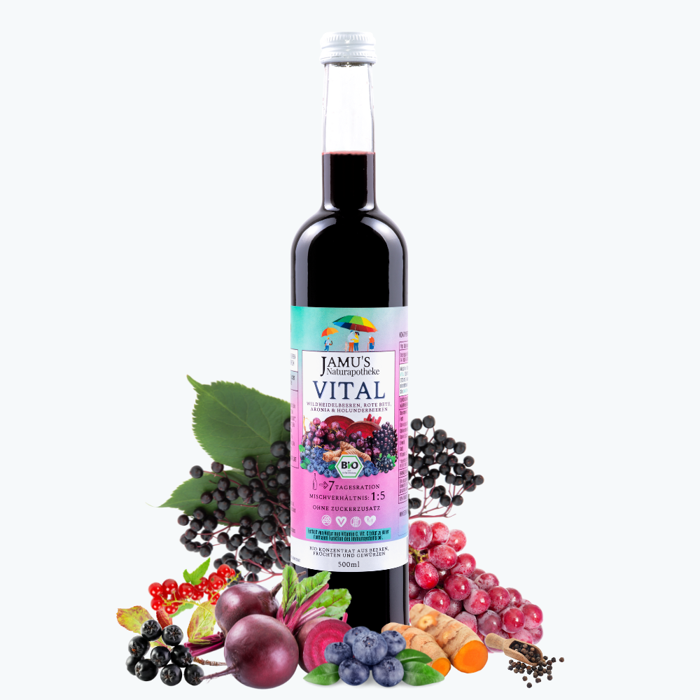 Bei JAMU Organic Spices glauben wir fest daran, Naturmedizin für jeden zugänglich zu machen. JAMU’s VITAL Konzentrat, das in Zusammenarbeit mit Apotheken entwickelt und ausgiebig getestet wurde, besteht aus einer natürlichen Mischung von Kräutern, Wurzeln, Früchten und Gewürzen.